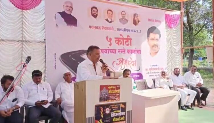 आष्टी तालुक्यातील बीडसांगवी येथे ५ कोटी रुपये रामा ७० ते बावी-बीडसांगवी-शेकापूर-आष्टी रामा ५७ रस्ता, प्रजिमा – १२ किमी – ७/०० ते १५/०० मध्ये सुधारणा करणे या रस्ते विकास कामांचा शुभारंभ आज आ.सुरेश आण्णा धस यांच्या हस्ते संपन्न झाले.याप्रसंगी विजय गोल्हार बोलत होते.पुढे बोलतांना गोल्हार म्हणाले,मतदार संघाचा विकास करण्यासाठी आ.सुरेश धस यांच्या माध्यमातून गेल्या वीस वर्षापासून त्यांची धडपड सुरू आहे.परंतु आता राज्यात केंद्रात आपले सरकार आहे.त्यामुळे तुम्ही मतदार संघातील दहावे,तेरावे,वर्षश्राध्द तसेच इतर किरकोळ कामे आम्ही बघू तुम्ही मुंबईलाच जाऊन थांबा आणि मतदार संघात मोठ्या प्रमाणावर विकास कामे आणा माझं आणि आ.धस यांचे जमत नसल्याचे ब-यांच जणांचे म्हणणे आहे पण आपण शेवटपर्यंत आ.धसांचा सेवक म्हणून काम करणार असल्याचे सांगत घरात बसून विकास होत नसतो त्यासाठी धस कुटूंबियांचा त्याग हा कुठल्याही तराजूत मोजला जाऊ शकत नाही.२८ वर्ष असलेल्या आ.धस यांच्या पुञाला मनक्यांच्या ञासाला सामोरे जावे लागतं याचे मुख्य कारण म्हणजे जनसेवेचा घेतलेला वसा स्वस्थ बसून देत नसल्याचे आपल्या समोर असल्याचेही गोल्हार यांनी सांगीतले.
