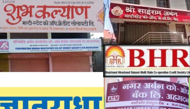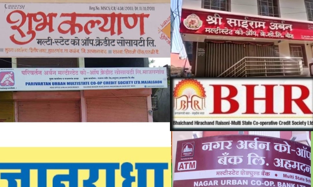 परिवर्तन अर्बन मल्टीस्टेट १८ कोटी १८ लाख ९१ हजार ८६४,शुभकल्याण मल्टीस्टेट- २० कोटी २१ लाख १५ हजार ५९२, समृद्धी जीवन फुड्स इंडिया- २० कोटी, माऊली मल्टीस्टेट- १ कोटी ४३ लाख ४५ हजार ५५४, मैत्रय ग्रुप- ४ कोटी १२ लाख १९ हजार ९२१, परळी पिपल्स अर्बन- ४४ लाख ७० हजार २५९,मातोश्री नागरी सहकारी पतसंस्था- २ कोटी ३५ लाख ३९ हजार ६४०,स्वराज्य जीआरबी इंडस्ट्रीज कंपनी – ४० लाख ६६ हजार, जीवनश्री नागरी सहकारी पतसंस्था- १८ लाख ९५ हजार ६००, जिजाऊ माँसाहेब मल्टीस्टेट- ७३ कोटी द्वारकादास मंत्री नागरी सहकारी बँक-२२९ कोटी ९४ लाख,(केवळ याच बँकेवर प्रशासक नियुक्त आहे.त्यामुळे येथील ठेवीदारांना किमान पैसे परत मिळतील हा दिलासा आहे.),हिना शाहीन बँक बीड-किमान २० ते २५ कोटी,चंपावती बँक बीड २० ते २५ कोटी,केबीसी चैन मार्केटींग नाशिक – बीड जिल्ह्यातील किमान २०० कोटी,श्रीसाईरामअर्बन,ज्ञानधारा,जिजाऊ माॅसाहेब,बीएचआर(भाईचंद हिराचंद रायसोनी),नगर अर्बन यासह अनेक मल्टीस्टेट डबघाईला आल्या आहेत.