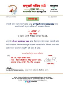 click2ashti update-लोकसभा निवडणूकीत दणदणीत महाराष्ट्रात विजय मिळविल्याने राष्ट्रवादी काॅग्रेस पार्टी (शरदचंद्र पवार गट)यांनी महाराष्ट्रात विधानसभा निवडणूकीच्या अनुषंगाने सर्व विभागातील पदनियुक्ती जाहिर करत असून,नुकतीच संभाजी नगर येथील मेळाव्यात प्रदेशध्यक्ष जंयत पाटील यांच्याहस्ते आष्टी येथील डाॅ.नदीम शेख यांची बीड जिल्हा अल्पसंख्याक अध्यक्षपदी निवड करण्यात आली.