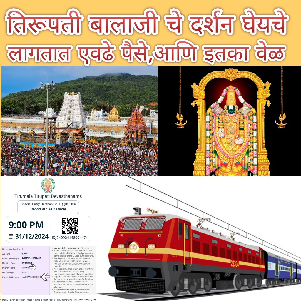 आष्टी click2ashti-जर आपण तिरूपती बालाजीचे दर्शन घेण्याच्या विचारात असाल तर आपणांस किती खर्च व किती वेळ लागेल हे आपण या बातमीत जाणून घेऊ या…