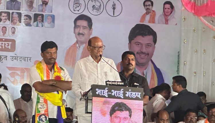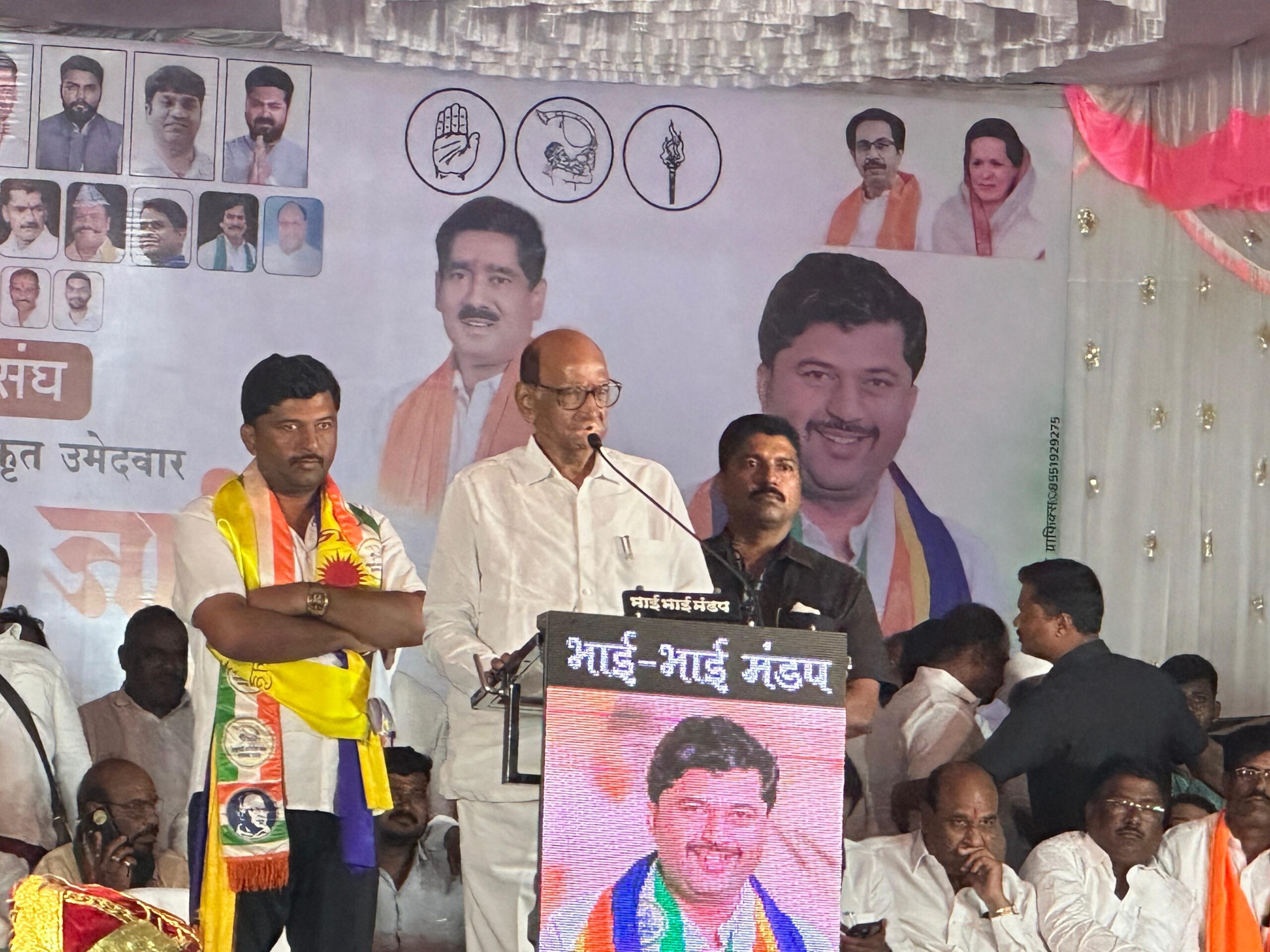 आष्टी विधानसभा मतदारसंघाचे महाविकास आघाडीचे उमेदवार महेबुब शेख यांच्या प्रचारार्थ शनिवार दि.९ रोजी सायंकाळी ६ वा.आयोजित करण्यात आलेल्या प्रमुख मार्गदर्शक म्हणून शरद पवार बोलत होते.यावेळी व्यासपीठावर खा.बजरंग सोनवणे, महाविकास आघाडीचे उमेदवार महेबुब शेख,रामकृष्ण बांगर,परमेश्वर शेळके,शिवसेना उध्दव ठाकरे गट जिल्हाप्रमुख परमेश्वर सापते, प्रभाकर देशमुख, डॉमहेश थोरवे,शिवभूषण जाधव, गुलाबराव घुमरे,आण्णासाहेब चौधरी,आष्टी विधानसभा अध्यक्ष राम खाडे,बाप्पुसाहेब डोके,डॉ.शिवाजी राऊत,मिलींद आव्हाड, डॉ.नदिम शेख,राहूल काकडे,रिजवान शेख,यांच्यासह आदि मान्यवर उपस्थित होते.पुढे बोलतांना खा.पवार म्हणाले,या तालुक्याचा चेहरामोहरा बदलण्यासाठी पाणि आणणे आवश्यक आहे आणि ते आणण्यासाठी आपण पाणी प्रश्न व एमआयडीसी चार प्रश्न सोडविण्यासाठी मी स्वतः लक्ष घालून मार्गी लावणार असल्याची ग्वाही तुम्हाला देतो.एक काळ असा होता बीड जिल्ह्याची माझी ओळख आष्टी तालुक्यामुळे झाली आहे.या मतदारसंघाने माजी आ.निवृत्ती उगले,भाऊसाहेब आजबे, लक्ष्मण जाधव यांना नेतृत्व करण्याची संधी मतदारसंघाने दिली.आता या मतदारसंघाने युवानेतृत्व महेबुब ला देऊन त्याने सांगितलेले दोन्ही प्रश्न मार्गी लावणार असल्याचेही खा.शरद पवार यांनी सांगितले.खा.बजरंग सोनवणे म्हणाले,लोकसभेची पुनरावृत्ती आपल्याला या विधानसभा निवडणुकीत करायची आहे.आपल्या या मतदारसंघातील दहशत मिटवून टाकायची आहे.लोकसभेच्या निवडणुकीत सुध्दा आमच्या व्यासपीठावर कुणीही मोठा नेता नसतांना फक्त पवार साहेबांवर ठेऊन मला विजय केले आहे.सध्याचे सरकार शेतकरी,तरुण,कष्टकरी नाराज असल्याचे सांगत आपण येणा-या काळात आष्टी मतदारसंघात साखर कारखाना व एमआयडीसी करणार असल्याचा शब्द खासदार बजरंग सोनवणे यांनी यावेळी दिला.महेबुब शेख म्हणाले,येथे जमलेल्या सर्व समुदाय हा आष्टी मतदार संघातील असून पवार साहेबांवर प्रेम करणारा आहे.गेल्या पन्नास वर्षांत आमदारकी एकाने वीस वर्ष,एकाने पंधरा वर्षं सत्ता भोगली पण त्यांनी मतदारसंघात काहिच विकास केला नाही.पुढील काळात आमच्या मतदारसंघात एमआयडीसी,कारखाना हे दोन उद्योग सुरु करायचे आहेत.आपल्या दृष्टीने गडचिरोली हा दुर्गम भाग म्हणून ओळखत होतोत पण ह्यापेक्षा बेकार अवस्था आपल्या मतदार संघातील आहे.हुकूमशाही वर सत्ता येत नसल्याचेही महेबुब शेख यांनी सांगितले.कार्यक्रमाचे सुत्रसंचलन अमोल जगताप यांनी केले तर आभार राम खाडे यांनी मानले.