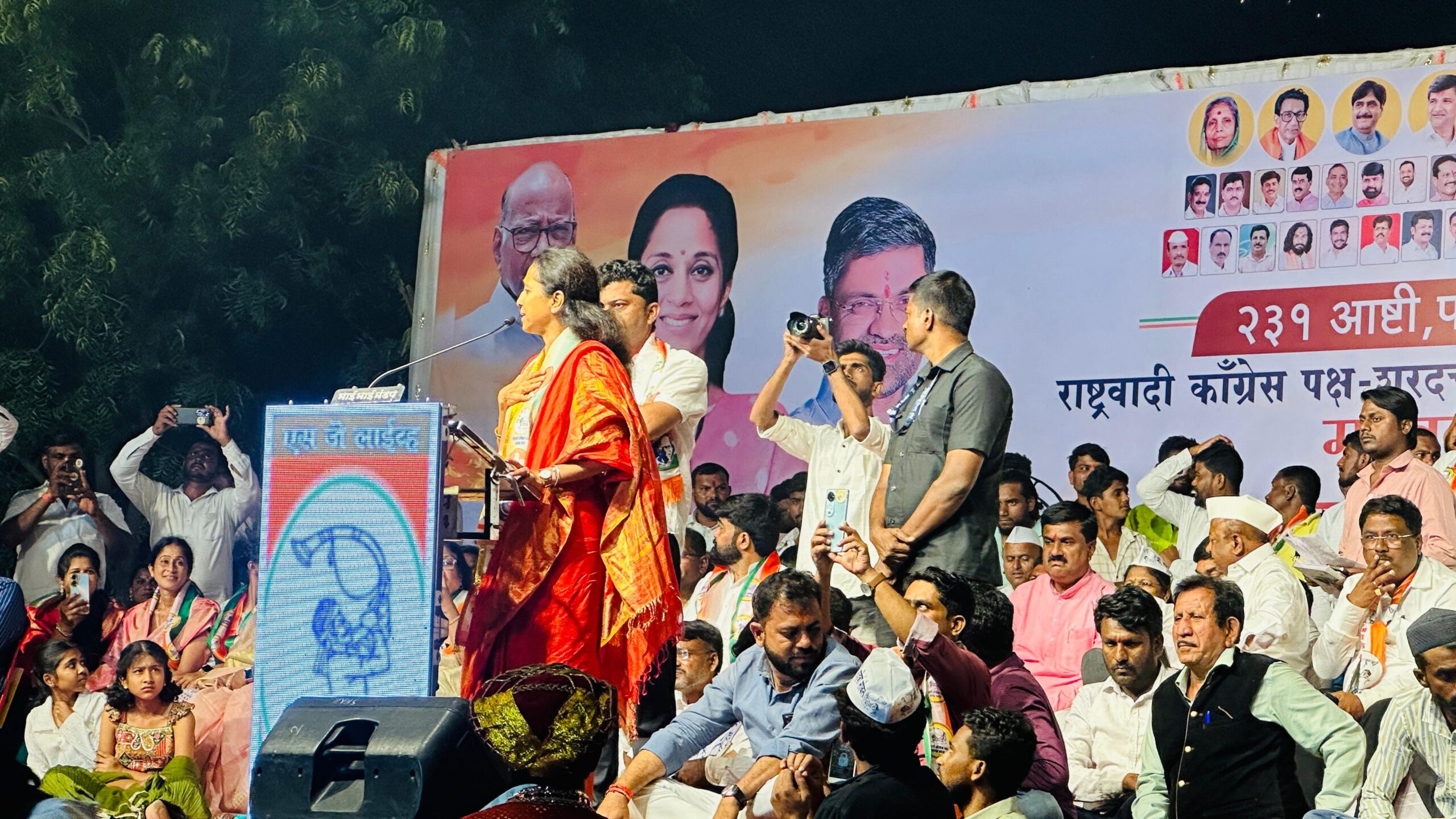 आष्टी विधानसभा मतदारसंघाचे महाविकास आघाडीचे उमेदवार महेबुब शेख यांच्या प्रचारार्थ शुक्रवार दि.१५ रोजी सायंकाळी ६ वा.कडा येथे आयोजित करण्यात आलेल्या प्रमुख मार्गदर्शक म्हणून खा.सुप्रिया सुळे बोलत होत्या.यावेळी व्यासपीठावर खा.बजरंग सोनवणे,खा.निलेश लंके,माजी आ.उषा दराडे,महाविकास आघाडीचे उमेदवार महेबुब शेख,सतिष शिंदे,परमेश्वर शेळके, प्रभाकर देशमुख, डॉ.महेश थोरवे, शिवभूषण जाधव, गुलाबराव घुमरे, आण्णासाहेब चौधरी, आष्टी विधानसभा अध्यक्ष राम खाडे, सुनिल नाथ,डॉ. शिवाजी राऊत, मिलींद आव्हाड, डॉ.नदिम शेख,राहूल काकडे,रिजवान शेख,अमोल राजे तरटे,रविंद्र ढोबळे,मिनाक्षी पांडुळे,यांच्यासह आदि मान्यवर उपस्थित होते.पुढे बोलतांना खा.सुप्रिया सुळे म्हणाल्या,बीड जिल्ह्याने लोकसभेला शरद पवार साहेबांच्या बरोबर असल्याचे दाखवून दिले आहे.मागच्यावेळेस जे उमेदवार निवडून दिले आणि ते पवार साहेबांमुळेच झाले आहेत.राम खाडे यांनी केलेली तक्रार बाबतीत खबरदारी म्हणून मी ही माहिती निवडणूक आयोगाच्या कानावर घालणार आहे. कारण,कोणत्याही पक्षाच्या उमेदवाराची फसवणूक होऊ नये अशी माझी प्रेमळ भावना आहे.मी यासंबंधी कुणावरही आरोप करत नाही. पण असे फोन येतात तेव्हा काळजी वाटते.सत्तेत असो किंवा विरोधात कारभार पारदर्शक झाला पाहिजे असे माझे मत आहे.विधानसभेचे उमेदवार महेबुब शेख म्हणाले,आजची सभा फक्त आष्टी तालुक्याची असून,आपल्या सभेला मैदान मिळाली नाही.म्हणून आपण मौलाली बाबांच्या सानिध्यात घेत आहोत.या मतदारसंघात एकही नेता एका पक्षात राहत नाही.आणि आपल्याला ह्यांच्या विरोधात निष्ठा आणि कष्ट या जोरावर मिळाली आहे.या प्रस्थापितांनी कधीही मतदार संघाच्या हिताचा निर्णय घेतला नसल्याचेही शेख यांनी सांगितले.