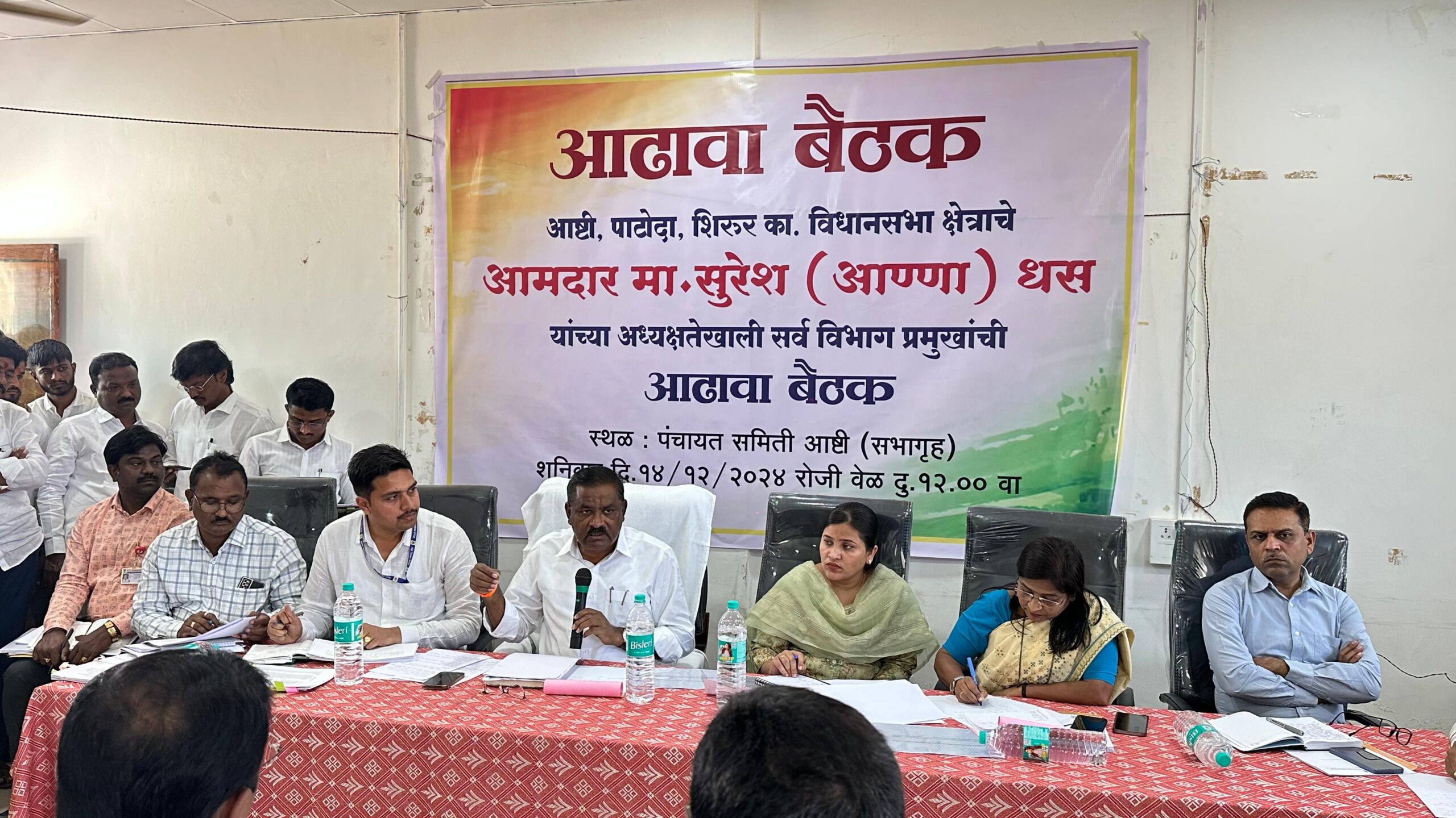 आष्टी पंचायत समिती सभागृहात शनिवार दि.१४ रोजी दुपारी १ वा.आढावा बैठकीचे आयोजन करण्यात आले होते.यावेळी आ.सुरेश धस बोलत होते.या बैठकीसाठी उपविभागीय अधिकारी वसिमा शेख यांच्यासह आष्टी तहसिलदार वैशाली पिटील,पाटोदा तहसिलदार दत्तात्रय निलावाड,तसेच आष्टी,पाटोदा,शिरूरचे
