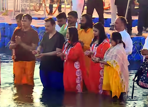 मुख्यमंत्री देवेंद्र फडणवीस यांनी सहकुटुंब केले पवित्र स्नान