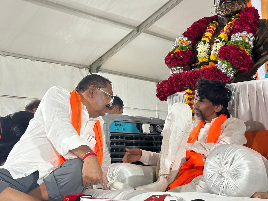 गेल्या दोन दिवसांपासून संघर्ष योद्धा मनोजदादा जरांगे पाटील यांनी लाखो मराठा सेवकां समवेत अंतरवली ते मुंबई जात आज आझाद मैदानावर मराठा समाजाला आरक्षण मिळावे म्हणून बेमुदत उपोषण सुरू केले आहे.या आंदोलनाला राष्ट्रवादी काँग्रेस,कॉग्रेस,शिवसेना या पक्षाच्या आमदार खासदारांनी पाठिंबा दिला.परंतु अजून भाजपाच्या कोणत्याच आमदार खासदारांनी पाठिंबा तर सोडा साधी भेट ही घेतली नाही.परंतु आज शुक्रवार दि.२९ रोजी रात्री ८.४५ वा.स्वत:आमदार सुरेश धस यांनी उपोषणस्थळी जाऊन आंदोलक मनोज जरांगे यांची भेट घेऊन आरक्षणावर मुख्यमंत्री देवेंद्र फडणवीस यांनी लवकरात लवकर तोडगा काढण्याबाबत बोलणार असल्याचे त्यांनी सांगितले.
