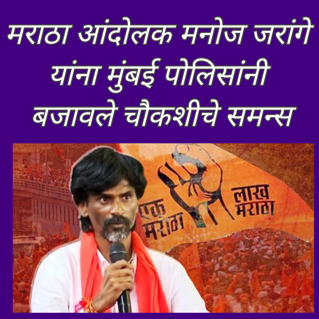 मराठा आंदोलक मनोज जरांगे यांना मुंबई पोलिसांनी बजावले चौकशीचे समन्स