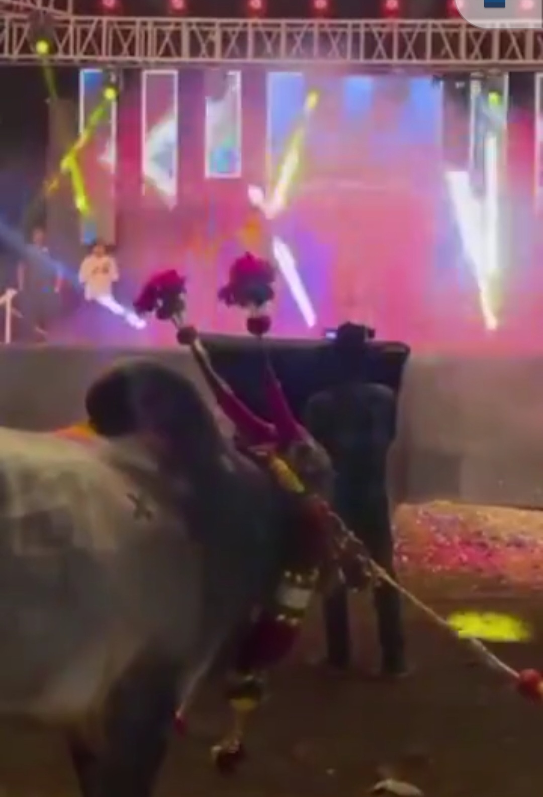 क्लिक2आष्टी अपडेट-“सबसे कातिल” असे जिला म्हटले जाते त्या गौतमी पाटीलची संपूर्ण महाराष्ट्रात एकच हवा आहे.जिथे जिथे गौतमीचे कार्यक्रम आयोजित केले जातात त्या त्या ठिकाणी गर्दीचा पूर वाहू लागतो. आत्तापर्यंत वाढदिवस, लग्न समारंभ, सांस्कृतिक कार्यक्रमात हजारोंच्या समोर गौतमीने आपली अदाकारी पेश केली.मात्र आता गौतमीच्या लावणीचा एक बैलही दिवाणा झाल्याचे पाहायला मिळाले.मुळशीत बावऱ्या बैलासाठी गौतमी पाटीलच्या लावणीचा कार्यक्रम ठेवण्यात आला होता.विशेष म्हणजे संपूर्ण कार्यक्रम पाहण्यासाठी फक्त बैलच होते.